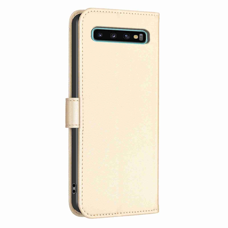 Funda de Cuero para Samsung Galaxy S10 con Relieve de Cuatro Hojas (Dorado)