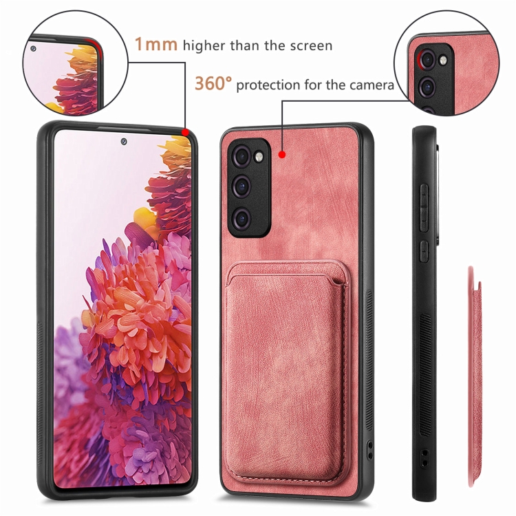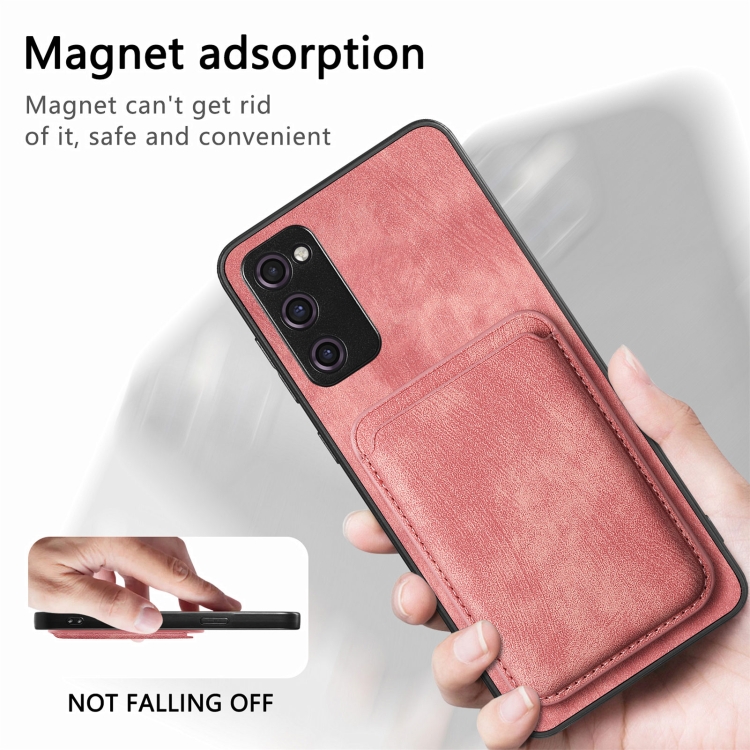 Funda de Teléfono Samsung Galaxy S20 FE Magnética con Bolso de Tarjeta de Cuero Retro (Rosa)