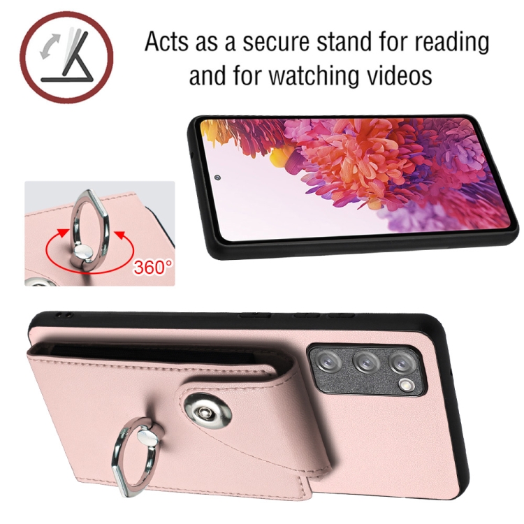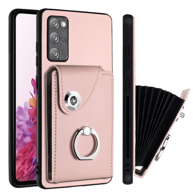 Funda para Teléfono Samsung Galaxy S20 FE Pu con Soporte para Anillo y Bolsa para Tarjeta (Rosa)