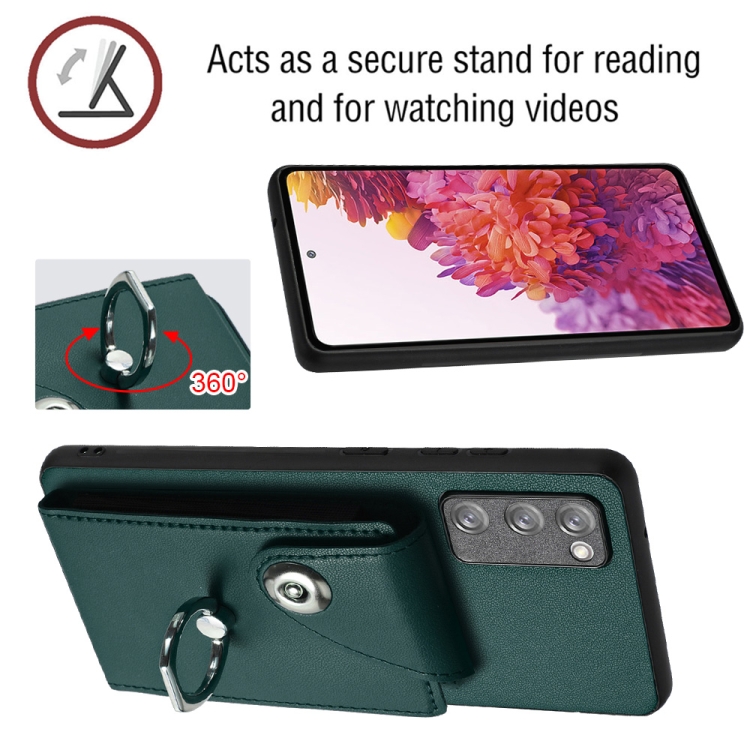 Funda para Teléfono Samsung Galaxy S20 FE Pu con Soporte para Anillo y Bolsa para Tarjeta (Verde)