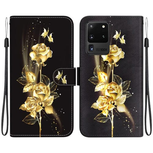 Funda para Teléfono Samsung Galaxy S20 Ultra Crystal Texture Cuero Dibujo Coloreado (Mariposa Dorada Rosa)