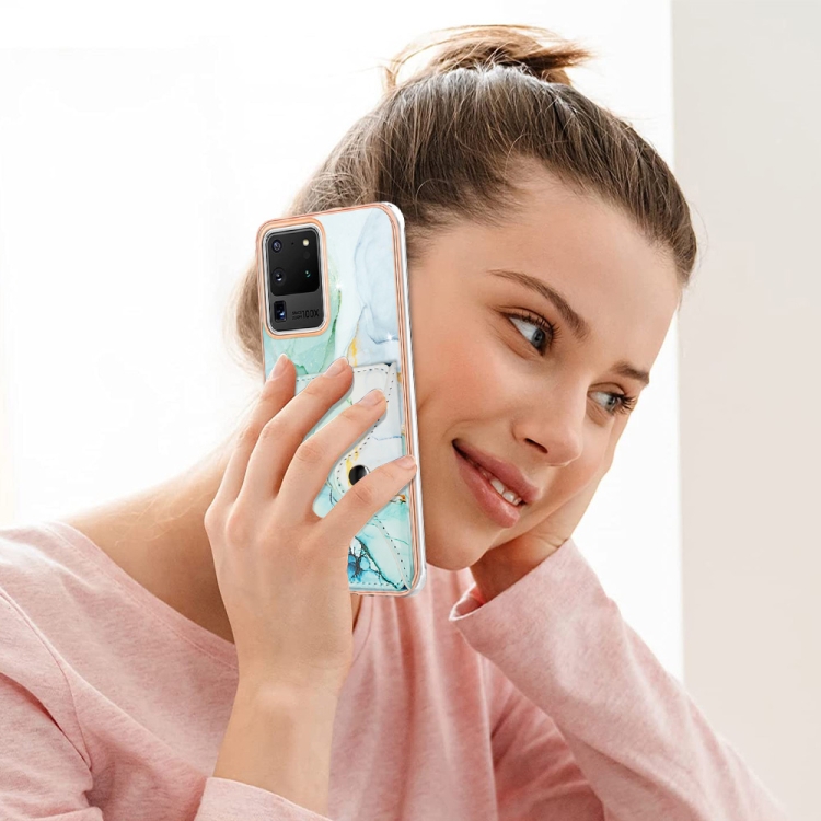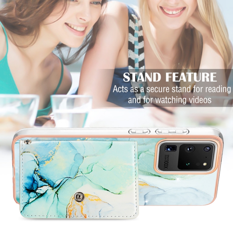Estuche para Teléfono Samsung Galaxy S20 Ultra con Ranura para Tarjeta Imd Patrón de Mármol (Verde)