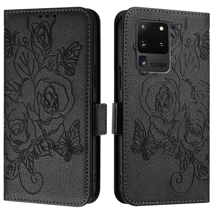 Estuche para Teléfono Samsung Galaxy S20 Ultra Cuero Antirrobo Rfid Rosa En Relieve (Negro)