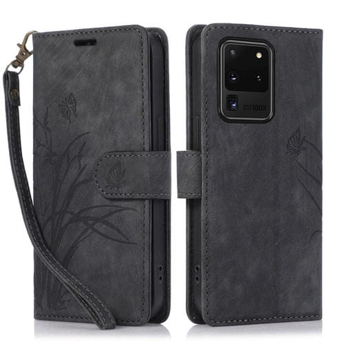 Funda de Cuero Samsung Galaxy S20 Ultra Orchid Butterfly En Relieve (Negro)