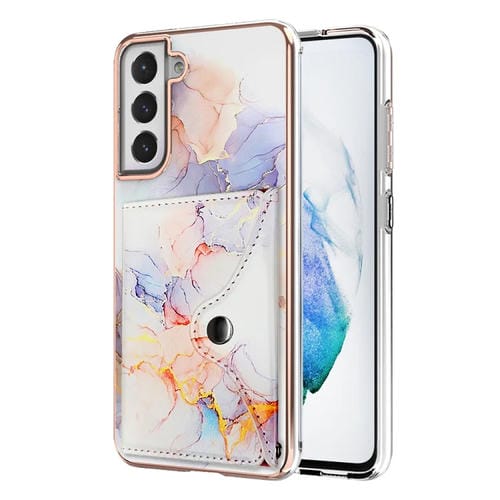 Estuche para Teléfono Samsung Galaxy S21+ 5G con Ranura para Tarjeta y Patrón Mármol (Blanco)