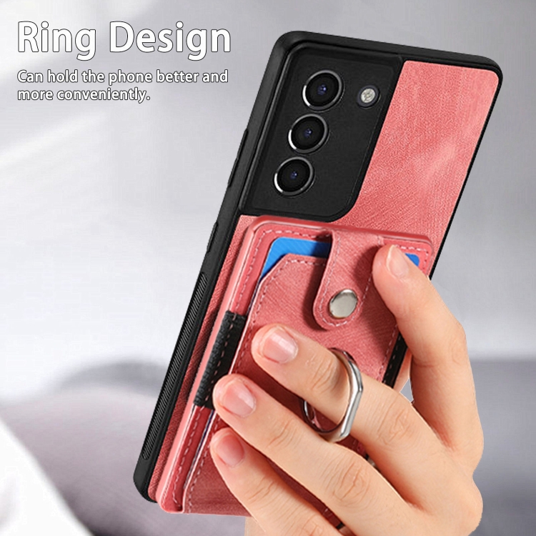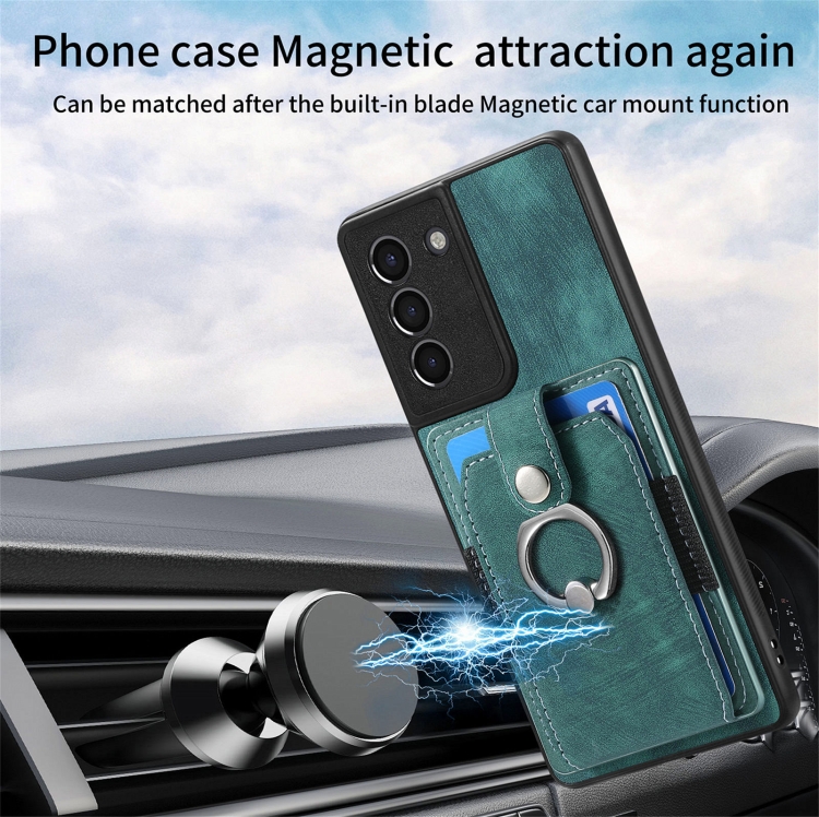 Funda para teléfono Samsung Galaxy S21 5G con billetera, tarjeta y anillo con sensación de piel retro (Verde)