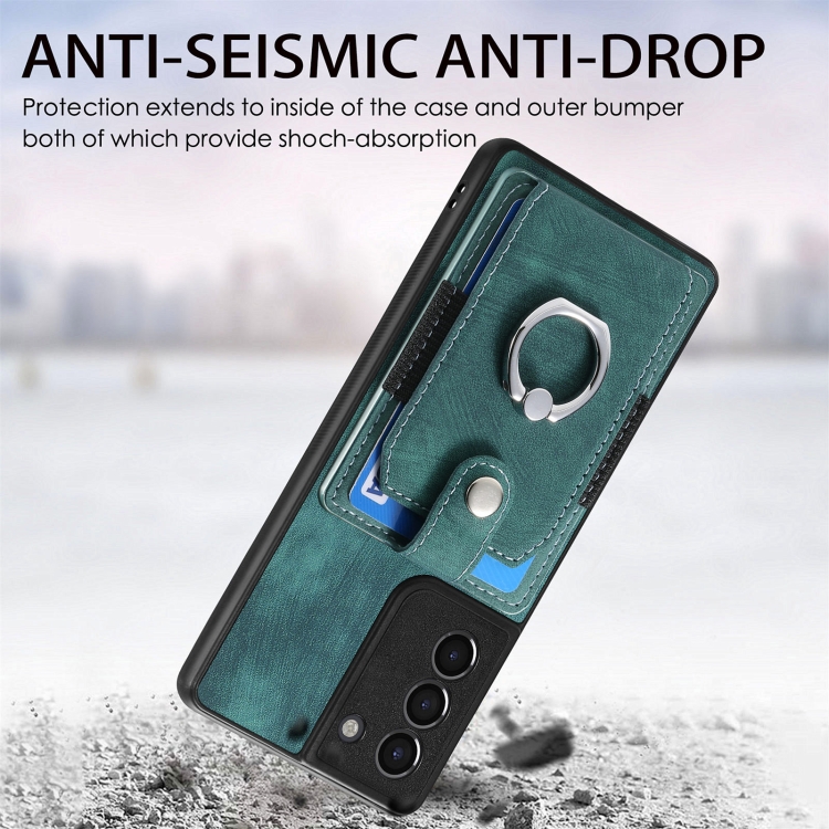Funda para Teléfono Samsung Galaxy S21 5G con Billetera, Tarjeta, Anillo y Sensación de Piel Retro (Rosa)
