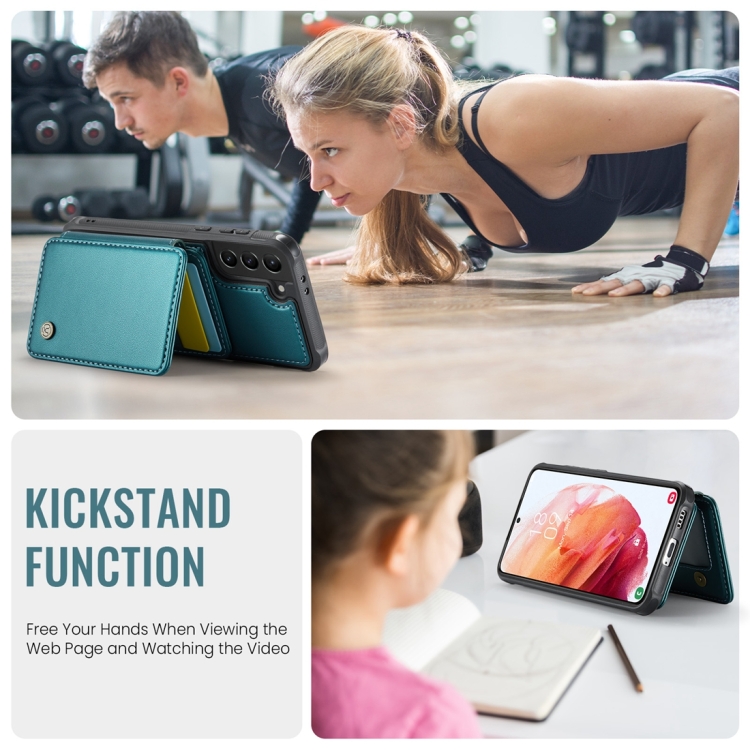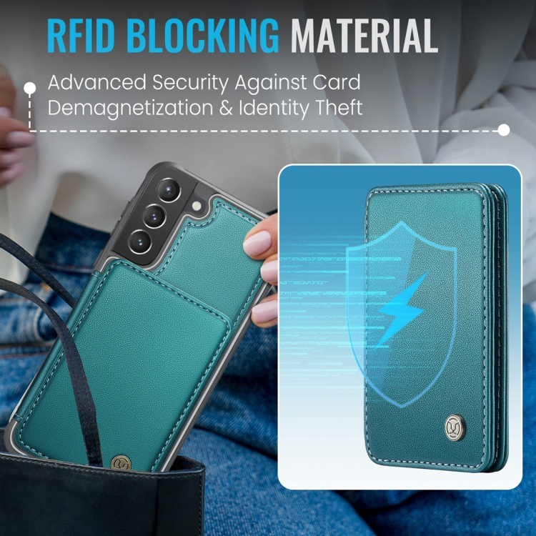Estuche para Teléfono Samsung Galaxy S21 5G Jeehood J05 Cuero Rfid Magnético Empresarial (Azul Verde)