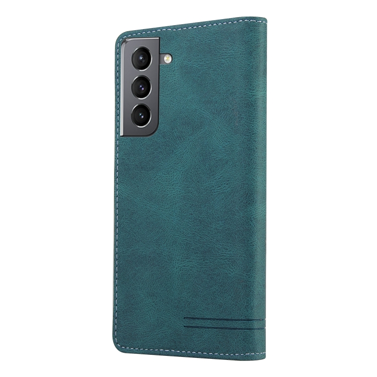 Funda para Samsung Galaxy S21 5G Skin Feel Cuero Tapa Horizontal Cepillo Antirrobo Soporte (Azul)