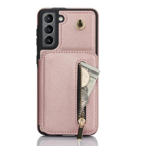 Estuche para Teléfono Samsung Galaxy S21 5G Ym006 con Bolsa para Tarjetas Cremallera y Cordón Doble (Oro Rosa)
