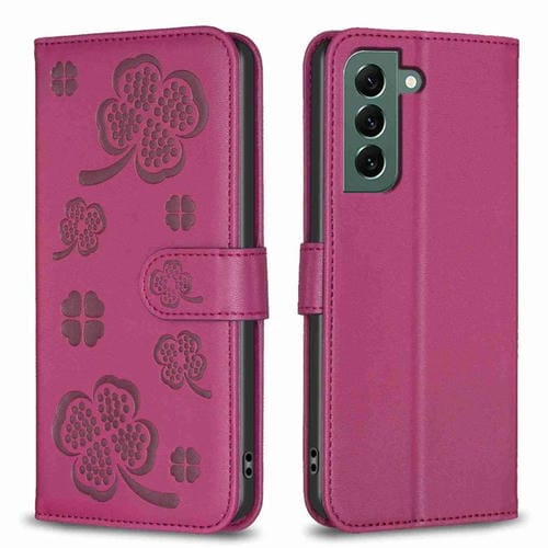 Funda para Teléfono Samsung Galaxy S21 FE 5G Cuero con Relieve de Cuatro Hojas (Rojo Rosa)