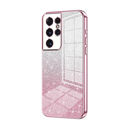 Estuche para teléfono Samsung Galaxy S21 Ultra 5G galvanizado con polvo de brillo degradado (Rosa)