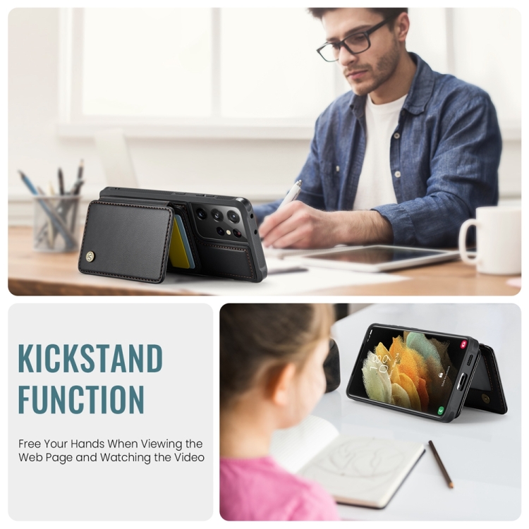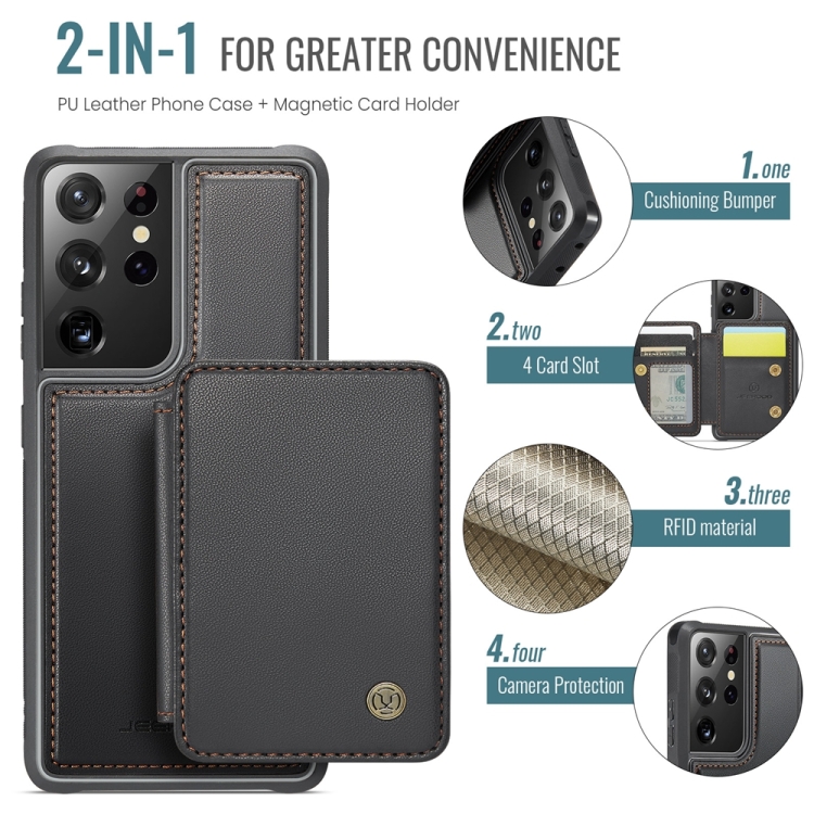 Estuche para Teléfono Samsung Galaxy S21 Ultra 5G Jeehood J05 Cuero Rfid Magnético Empresarial (Negro)