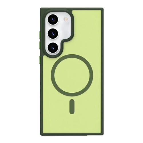 Estuche para teléfono Samsung Galaxy S22 + 5G Magsafe Mate a Prueba de Golpes con Botón de Metal Sensación de Piel (Verde)