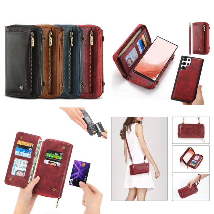 Funda para Samsung Galaxy S22+ 5G Crossbody Cuero con Billetera y Cremallera (Verde)