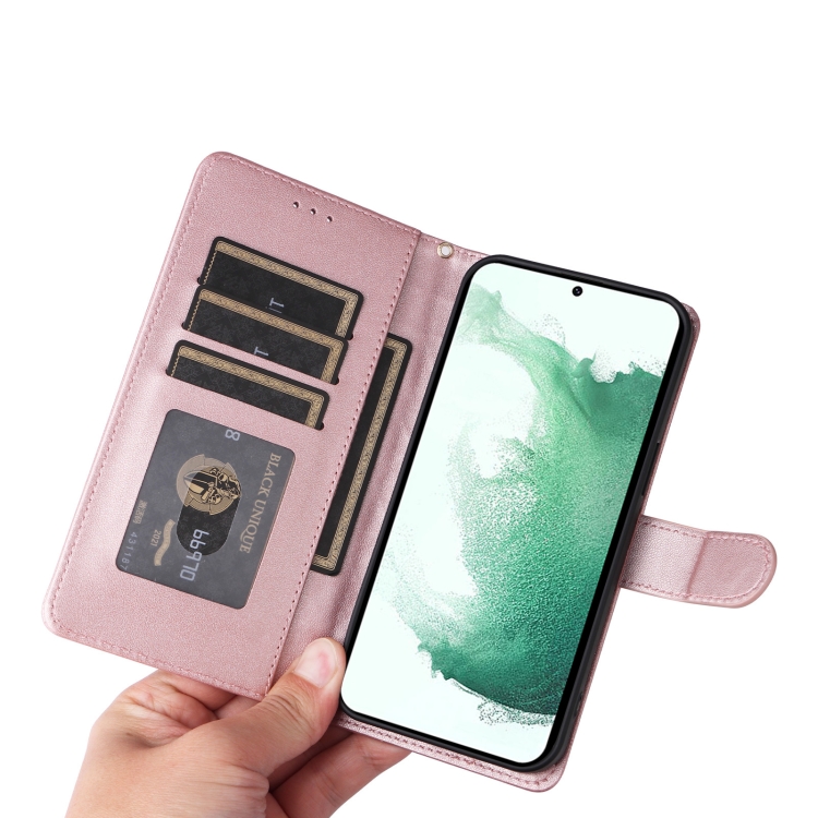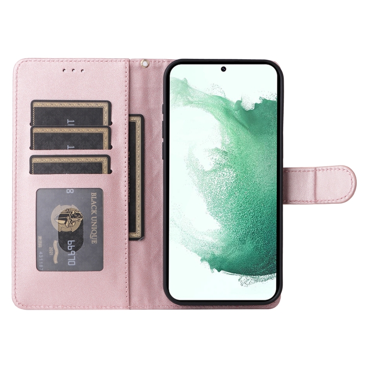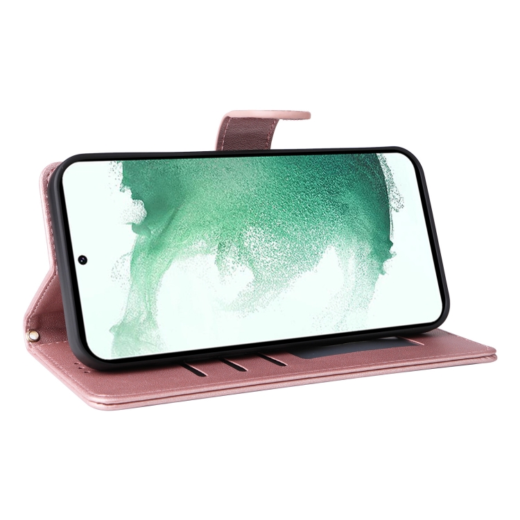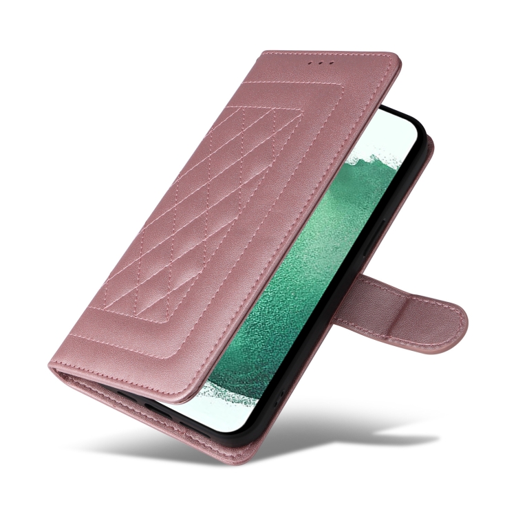 Estuche para Teléfono Samsung Galaxy S22 + 5G Tapa de Cuero Entramado de Diamantes (Oro Rosa)