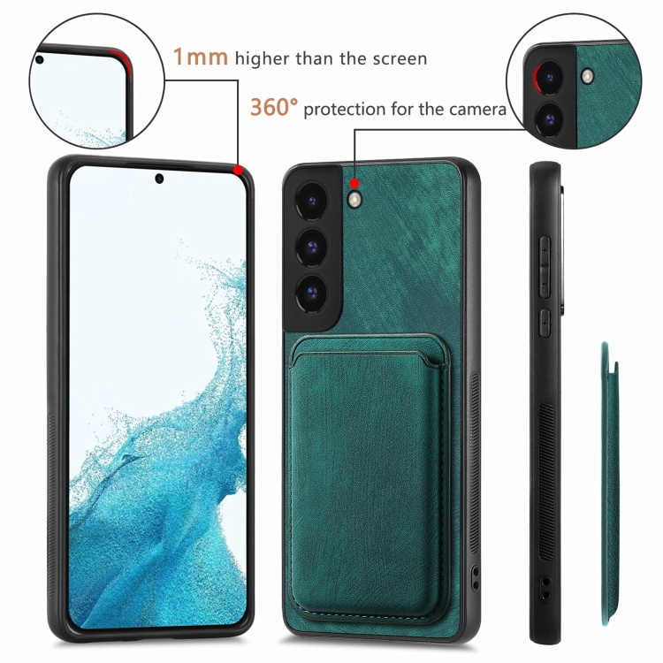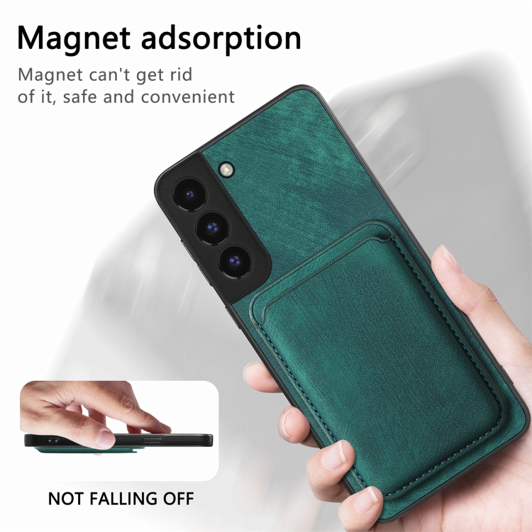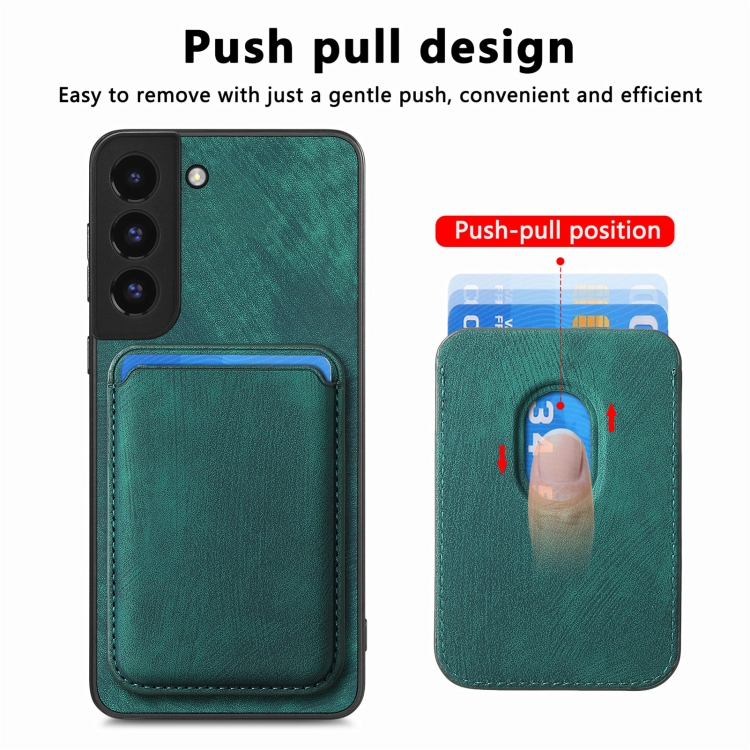 Funda de Teléfono Samsung Galaxy S22 + 5G Magnética con Bolsa de Tarjeta Cuero Retro (Verde)