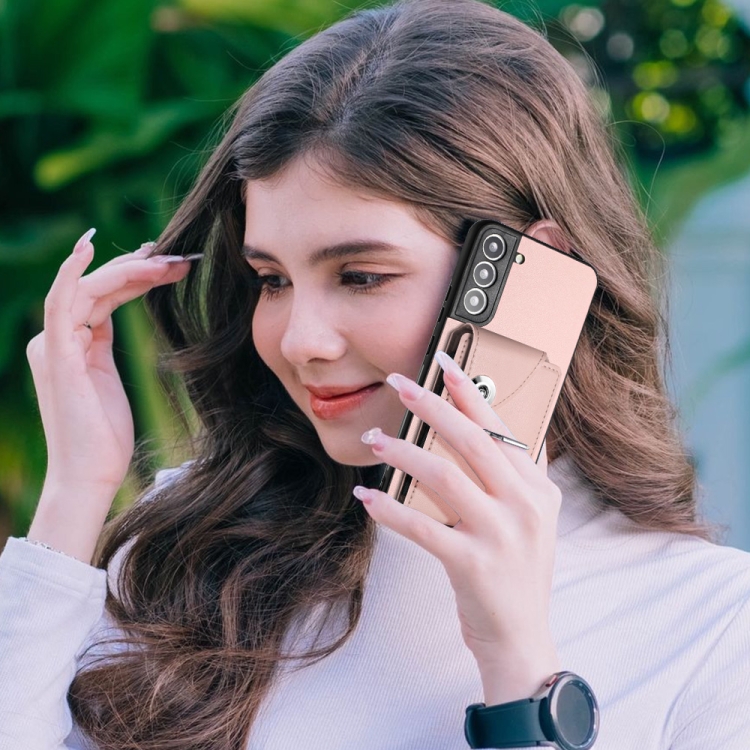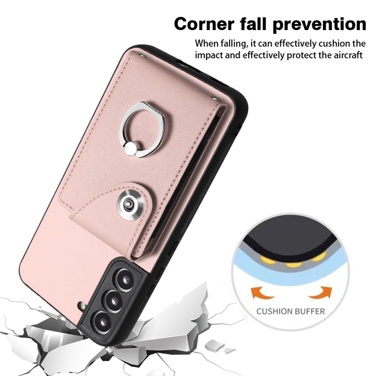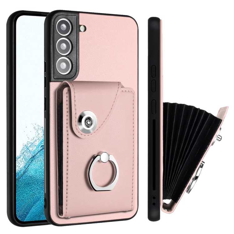 Funda para Teléfono Samsung Galaxy S22 + 5G de PU con Soporte para Anillo y Bolsa para Tarjeta (Rosa)