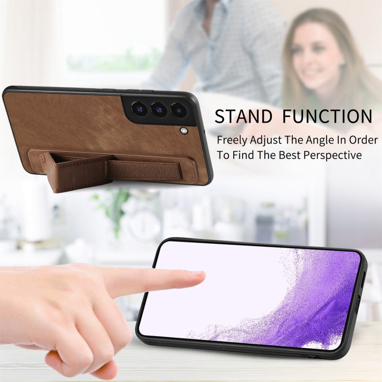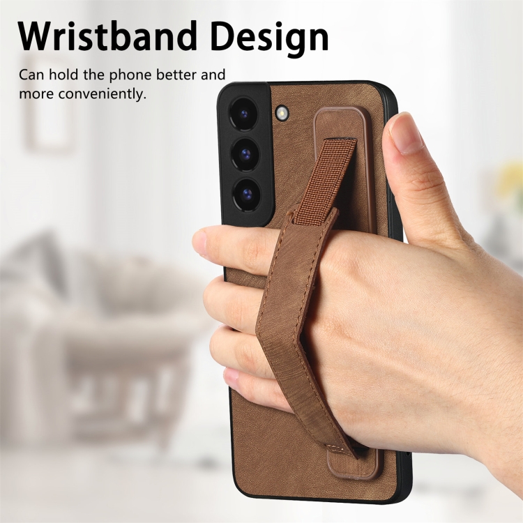 Funda Trasera para Samsung Galaxy S22 + 5G Cuero con Soporte para Pulsera (Marrón)
