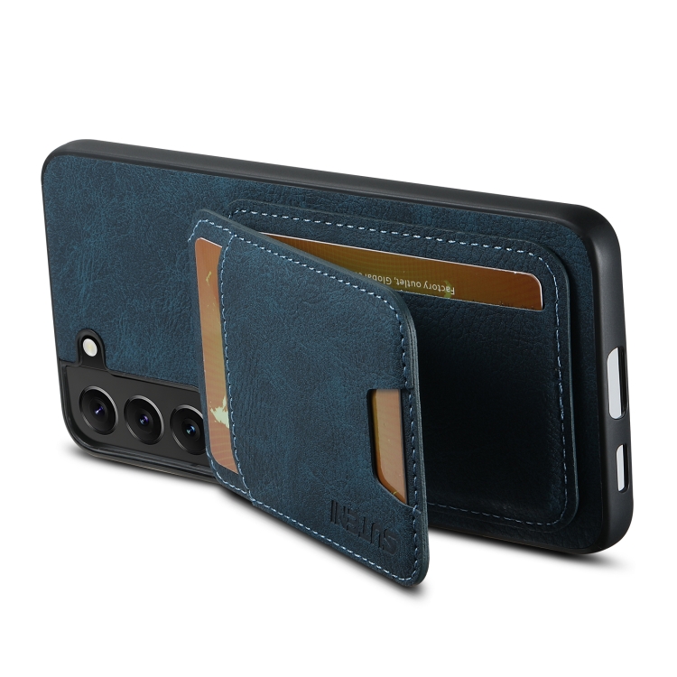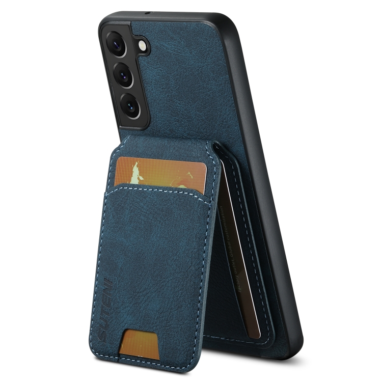 Funda para Teléfono Suteni H02 para Samsung Galaxy S22 + 5G con Soporte y Billetera de Cuero Litchi (Azul)