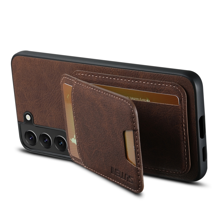 Funda para Teléfono Samsung Galaxy S22 + 5G Suteni H02 con Soporte y Billetera de Cuero Litchi (Marrón)