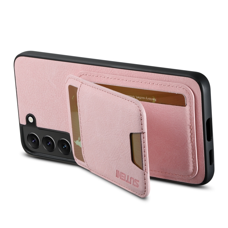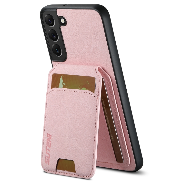 Funda para teléfono Suteni H02 para Samsung Galaxy S22 + 5G con soporte y billetera de cuero Litchi (Rosa)