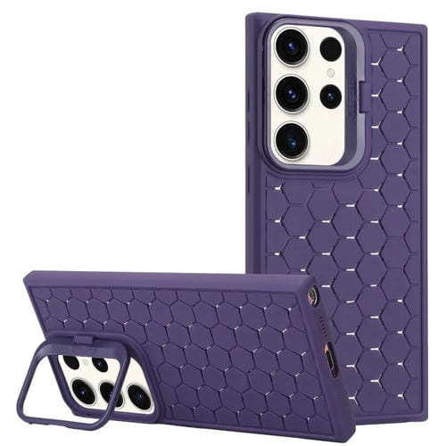 Estuche para Teléfono Samsung Galaxy S24 Ultra 5G Magsafe con Soporte para Lente Radiante en Forma de Panal (Púrpura)