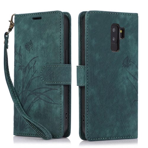 Funda para Teléfono Samsung Galaxy S9 Cuero Relieve Mariposa Orquídea (Verde)