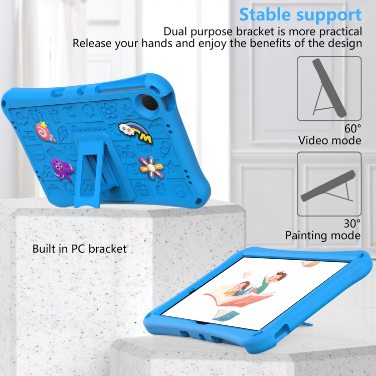 1. Material: Hecho de material EVA y PC resistente a los impactos, evita eficientemente que la tableta sufra caídas accidentales, golpes y rayones, súper a prueba de golpes.
