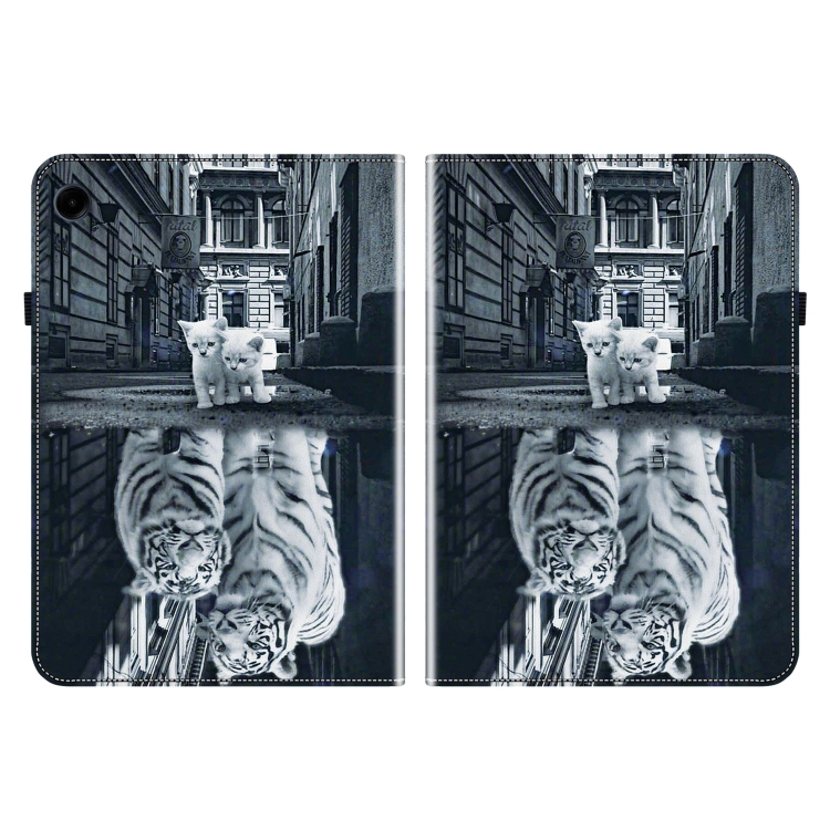 Funda para Tablet Samsung Galaxy Tab A9 Cuero Pintado Textura de Cristal (Tigre Reflejo de Gato)