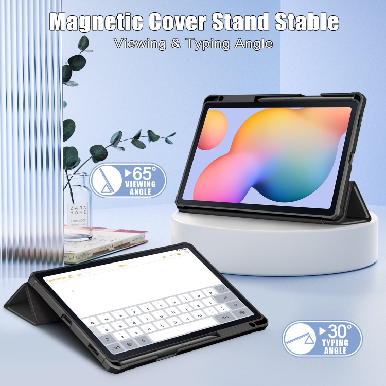 Funda para Tablet Samsung Galaxy Tab S6 Lite Cuero Inteligente 3 Pliegues (Negro)