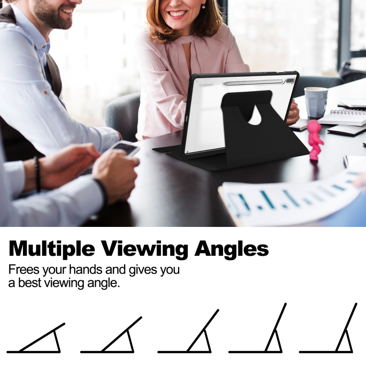 Funda para Samsung Galaxy Tab S9+ Cuero Transparente Inteligente 360 Rotación (Negro)