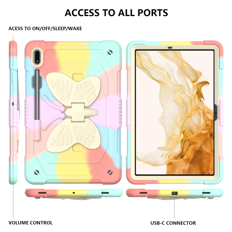 Funda Tablet Samsung Galaxy Tab S9 Butterfly Kickstand Heavy Duty Hard Rugged (Oro Rosa)