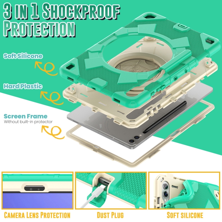 Funda para Tablet Samsung Galaxy Tab S9 Híbrida Silicona Mango Giratorio (Beige Cian)
