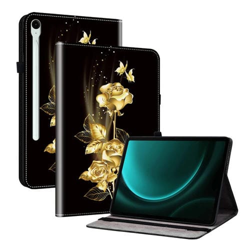 Funda para Tablet Samsung Galaxy Tab S9 / S9 FE Cuero Pintado Textura de Cristal (Mariposa Dorada Rosa)