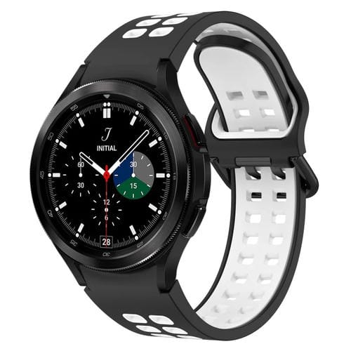 Banda de Reloj de Silicona para Samsung Galaxy Watch 4 Classic 46mm Transpirable (Negro + Blanco)