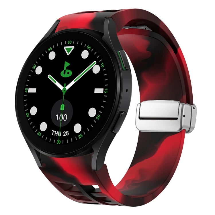 Correa de Silicona para Samsung Galaxy Watch 5 Golf Edition Richard Correa con Hebilla Plateada Plegable Magnética (Camuflaje Rojo Negro)