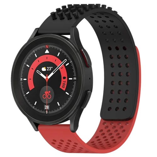 Correa de Reloj silicona Samsung Galaxy Watch 5 Pro 45mm 20mm orificios transpirable (Negro + Rojo)