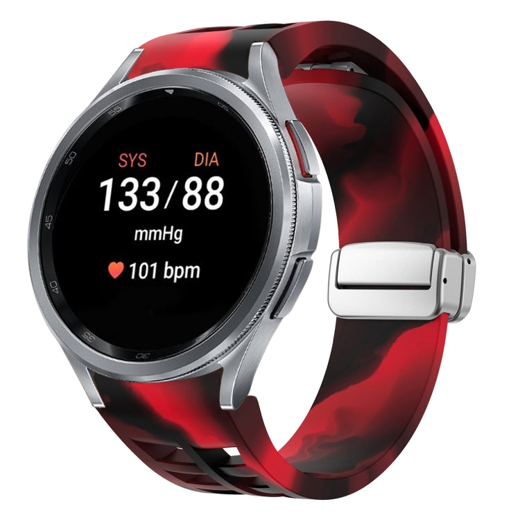 Correa de Silicona para Samsung Galaxy Watch 7 40/44mm con Hebilla Plateada Plegable Magnética (Camuflaje Rojo Negro)