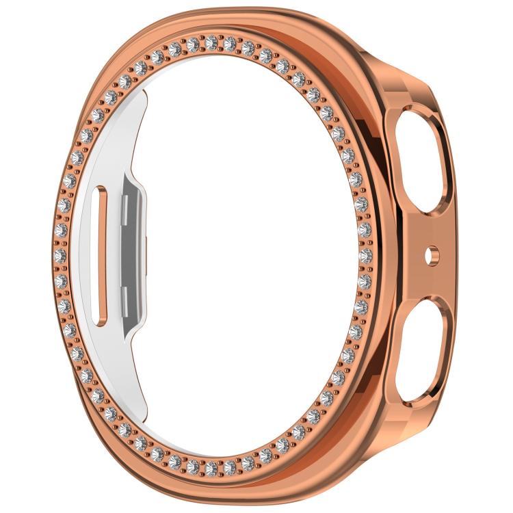 Para Samsung Galaxy Watch 8 de 40 mm, caja de PC hueca con una sola fila de diamantes y media cobertura (oro rosa galvanizado)