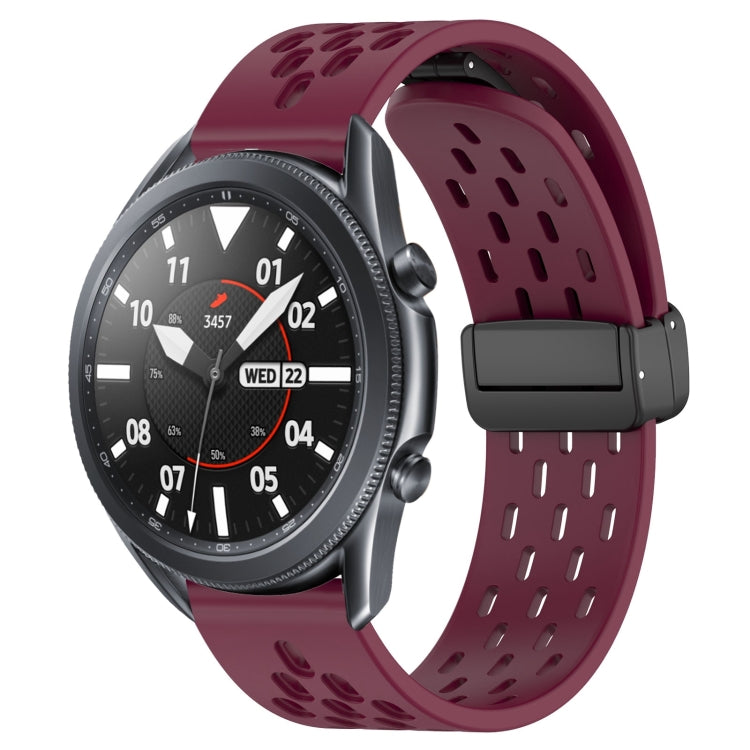 Correa de Reloj de Silicona para Samsung Galaxy Watch3 45mm 22mm con Cierre Magnético Plegable (Rojo Vino)