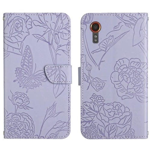 Funda para Teléfono Samsung Galaxy Xcover 7 5G Skin Feel Cuero con Tapa En Relieve Mariposa (Púrpura)