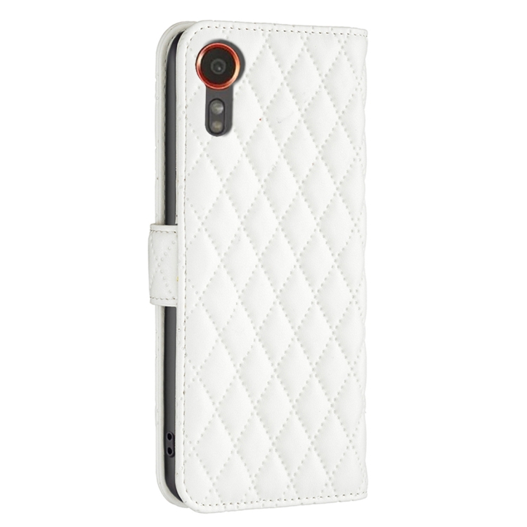 Funda para Samsung Galaxy Xcover 7 Diamond Lattice Wallet de Cuero con Tapa (Blanco)