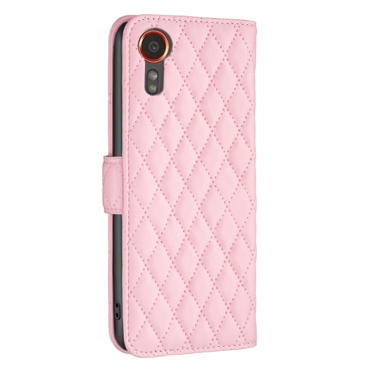 Funda de Cuero con Tapa para Samsung Galaxy Xcover 7 Diamond Lattice (Rosa)