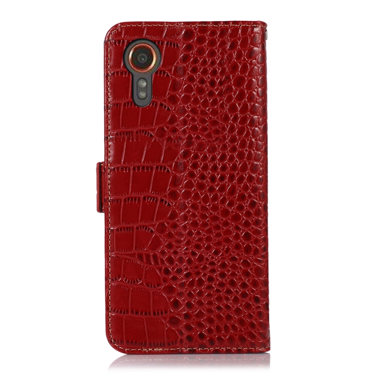 Funda para Teléfono Samsung Galaxy Xcover 7 Piel de Vaca con Capa Superior de Cocodrilo (Rojo)