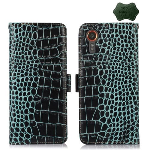 Funda para Teléfono Samsung Galaxy Xcover 7 Piel de Vaca con Capa Superior de Cocodrilo (Verde)
