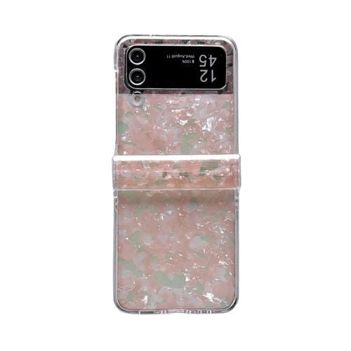 Estuche para Teléfono Samsung Galaxy Z Flip3 5G Juego de Tres Piezas Textura Concha Nacarada (Rosa Verde)