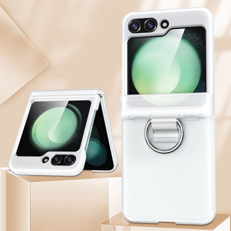 Estuche para Teléfono Samsung Galaxy Z Flip4 5G TPU + PC con Eje Central Plegable y Anillo (Blanco Mate)