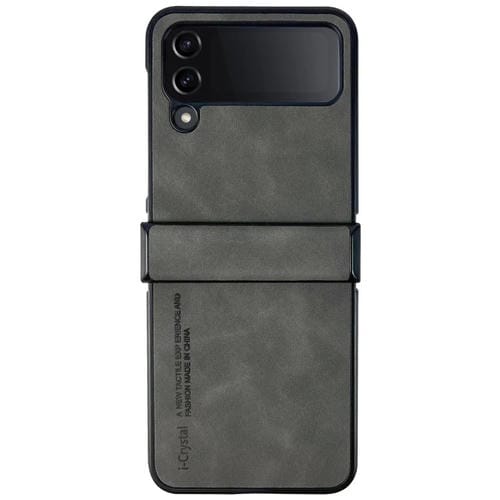 Estuche plegable para Samsung Galaxy Z Flip4 I.Crystal Lambskin de tres piezas (Gris Oscuro)