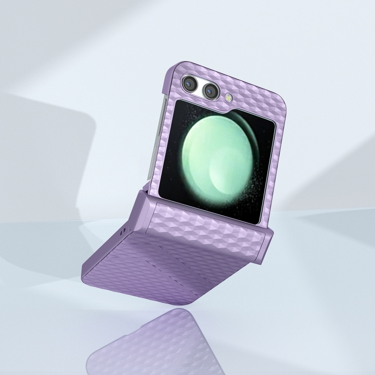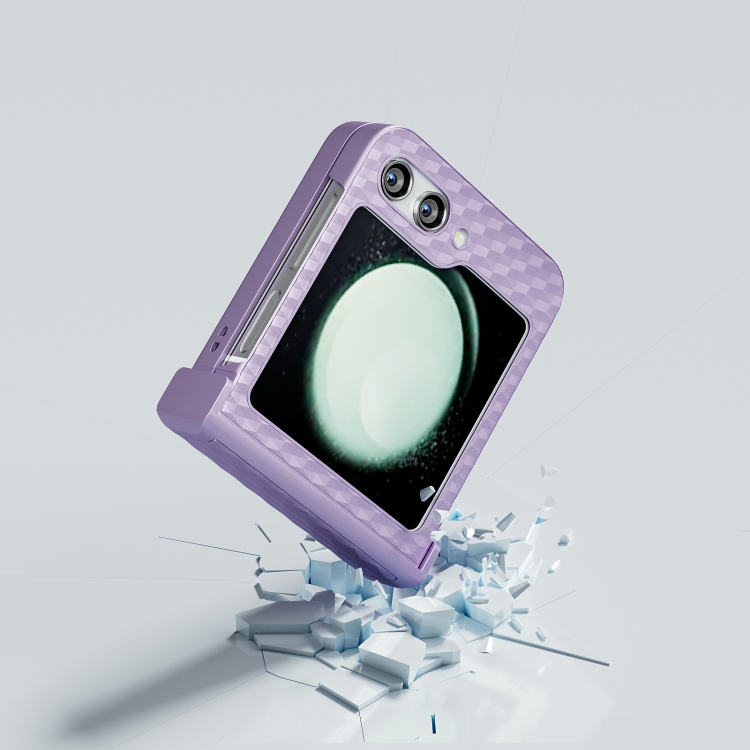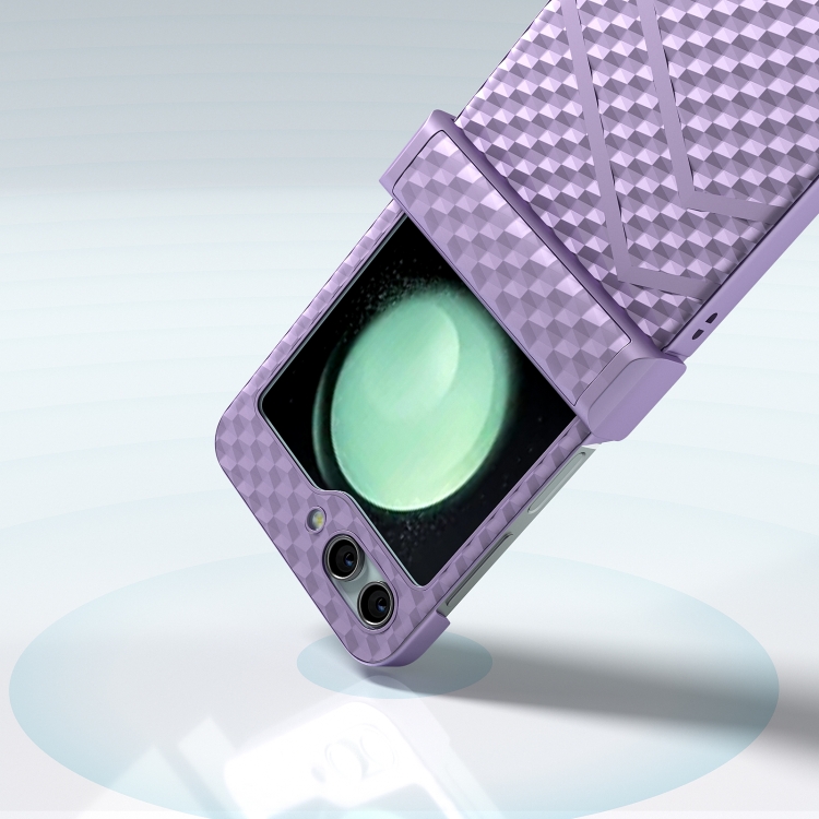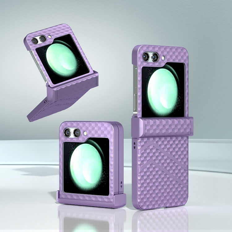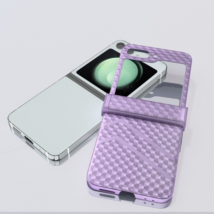 Estuche para teléfono Samsung Galaxy Z Flip5 5G 3 en 1 con PC mate patrón de onda y bisagra (Púrpura)